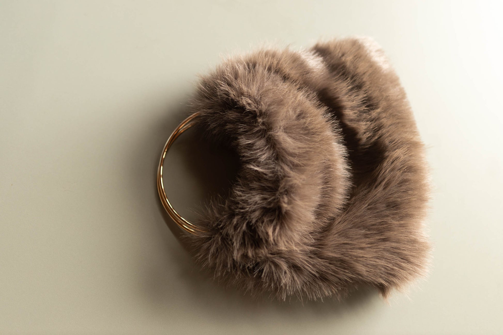 Bolsa de pelos preta forrada com alça de metal dourado. Composição do tecido: 100% poliéster. Sobra da indústria têxtil local.