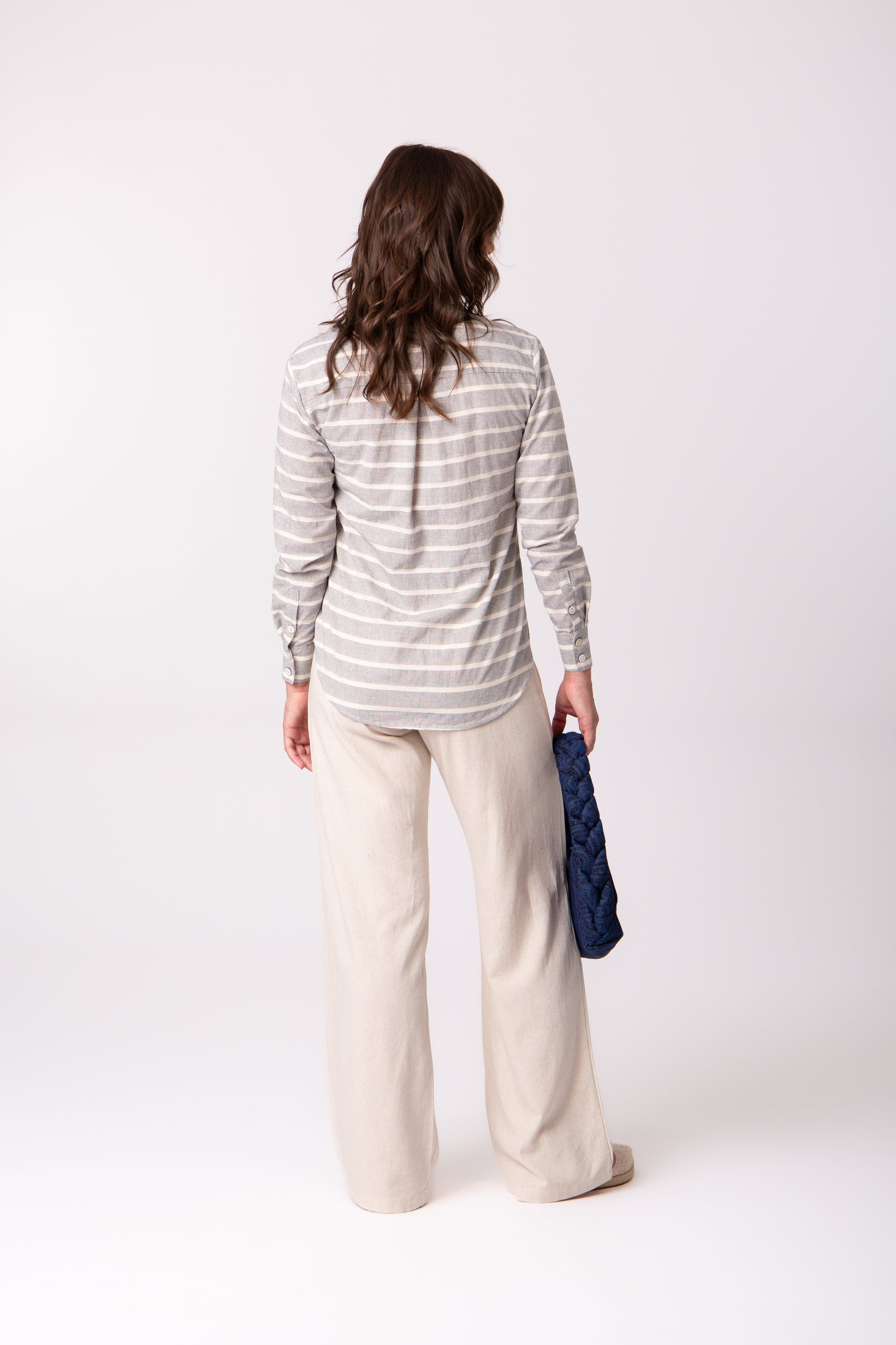 Calça feminina de alfaiataria clássica, com corte amplo e fluido. A modelagem traz equilíbrio entre sofisticação e conforto, tornando a peça versátil para diferentes ocasiões do trabalho a produções mais elaboradas.